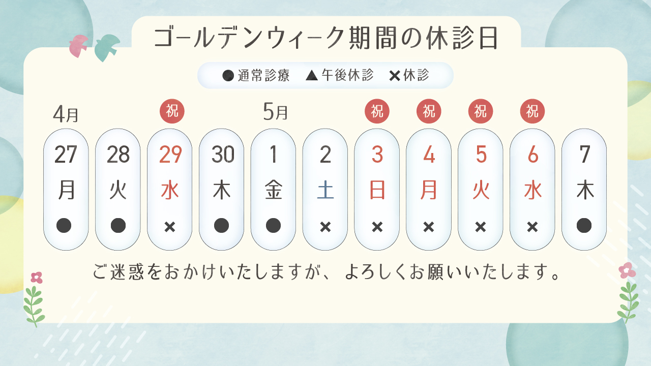 GW休診のお知らせ